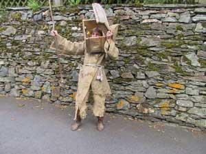 im Rahmen der Vorbereitungen auf die diesjährigen "1. Catzenelnbogener Ritterspiele" gelang den Organisatoren ein sensationeller Fund. "Catzimodo", der letzte leibhaftige Nachkomme des berühmten Katzenelnbogener Grafengeschlechts, ist bei Aufrämarbeiten aus den Grüften des Katzenelnbogener Schlosses entstiegen! Links: Wolfgang Steinke mit dem Kostüm "Catzimodo". |